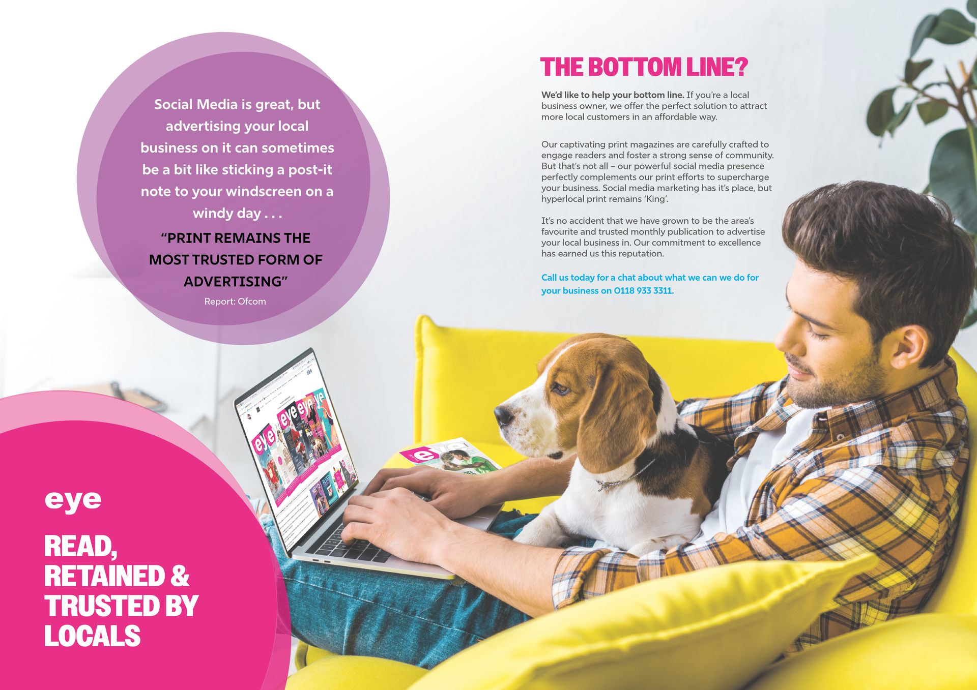 That’s great! We are happy to receive print-ready advertising. Artwork should be a high quality PDF or JPEG/JPG with a minimum resolution of 300dpi on imagery. For FP, set edge to edge with a 3mm bleed. Artwork should be submitted to: Design@eyemagazines.co.uk